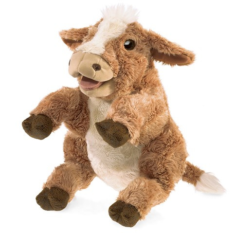 Did you know that puppet play is helpful in language acquisition? Whether you say, "how now, brown cow" or merely moo with delight, the Folkmanis® BROWN COW puppet is a brainy bovine that teaches with fun in mind.