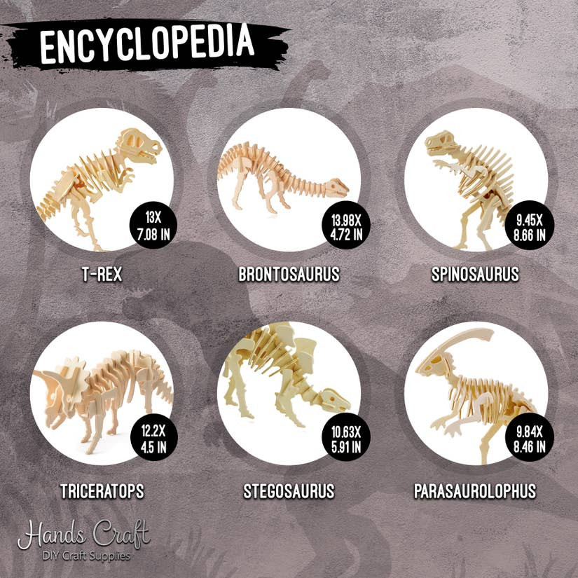 DIY 3D Wooden Puzzle Bundle Set, Pack of 6 Dinsosaur Brain Teaser Puzzles | Educational STEM Toy for Kids and Adults | Safe and Non-Toxic Easy Punch Out Premium Wood. 6 pc Puzzle Bundle Set: This bundle pack includes: T-Rex, Brontosaurus, Spinosaurus, Triceratops, Stegosaurus, and Parasaurolophus. No tools or glue is required to build your very own dinosaur puzzles!