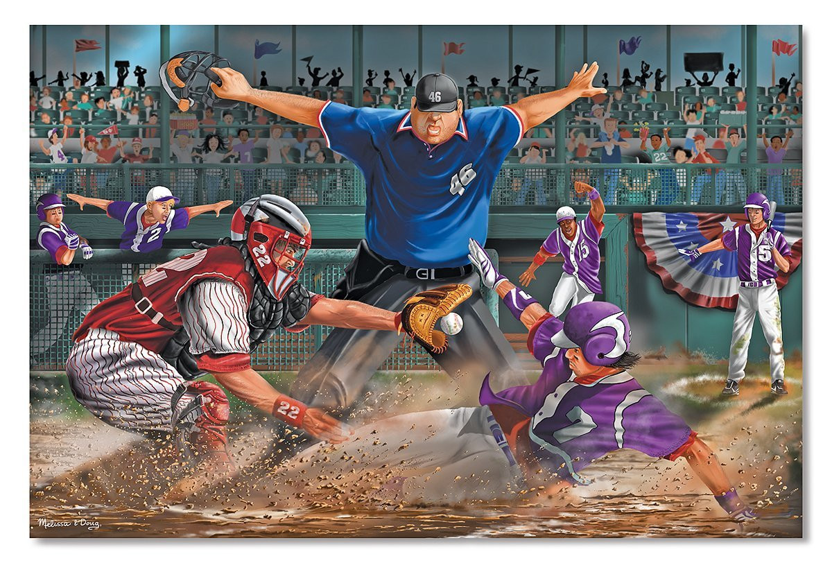 Safe. (And durable, too.) This action-packed floor puzzle depicts the thrilling moment when a runner slides into home. Extra-thick cardboard pieces make this 48-piece floor puzzle up to the challenge of becoming a sport's fan's favorite. - 4+YEARS. 2'x3'
